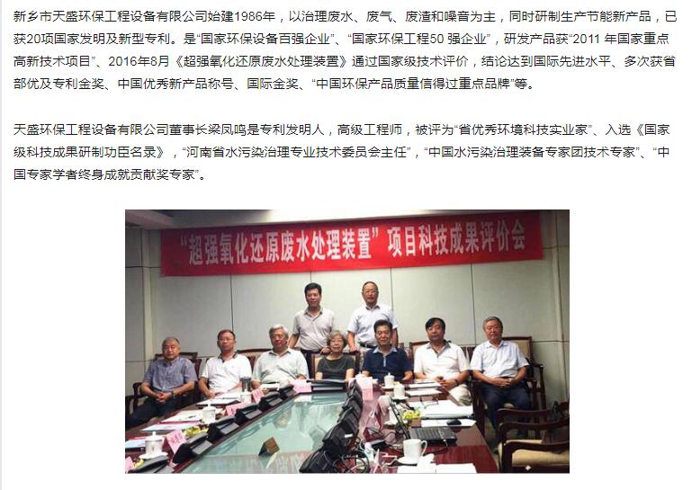 中國高新技術網發布:《關注:解碼科技創新》——新鄉市天盛環保“超強氧化還原廢水處理技術”