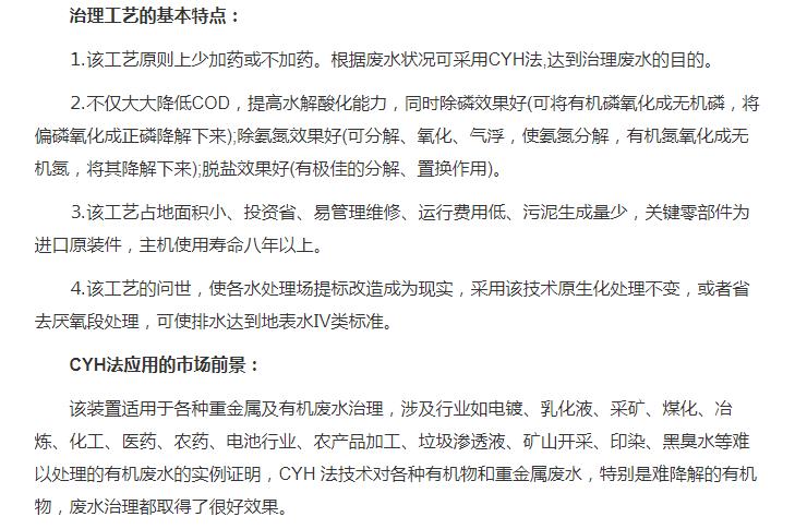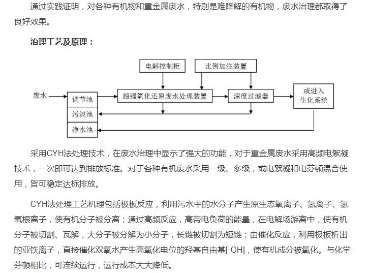 超強(qiáng)氧化還原廢水處理裝置(CYH法)處理各種有機(jī)廢水、各種重金屬廢水